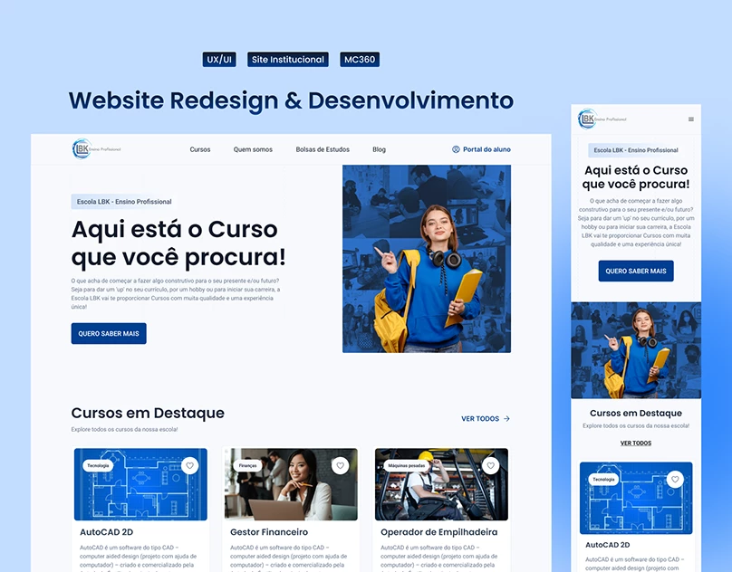 Sites adaptáveis a qualquer dispositivo (celular, tablet, desktop).